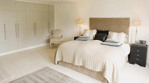 This apartment with nice shades of blue and a beautiful bathroom will help you to relax after work.